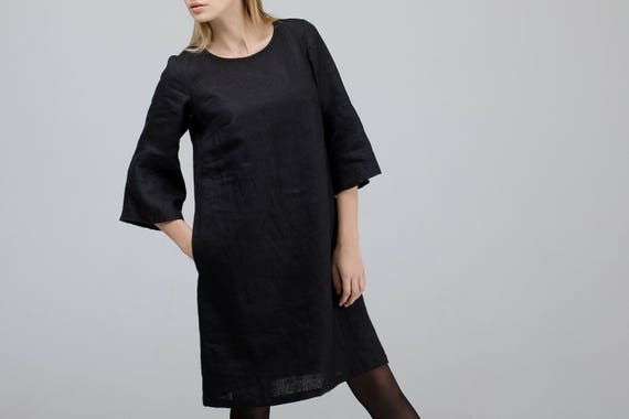 - Black dress with bell sleeves knee length shop