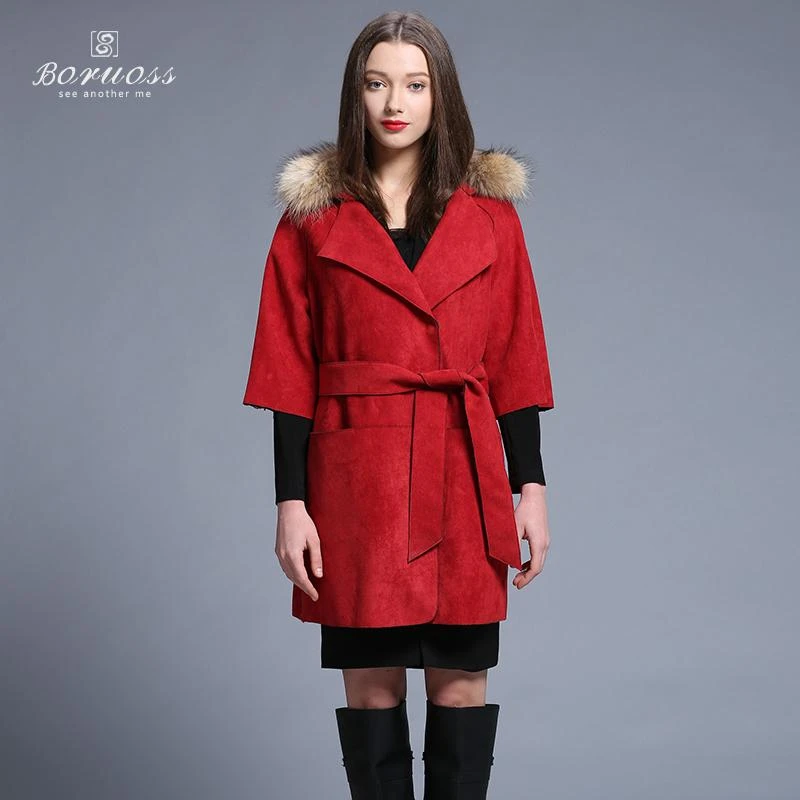 Red fur trench coat Clearance, Woman Casual Windbreaker 2016 Spring Clearance