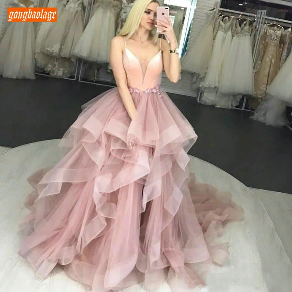 - Ruffle prom dress long