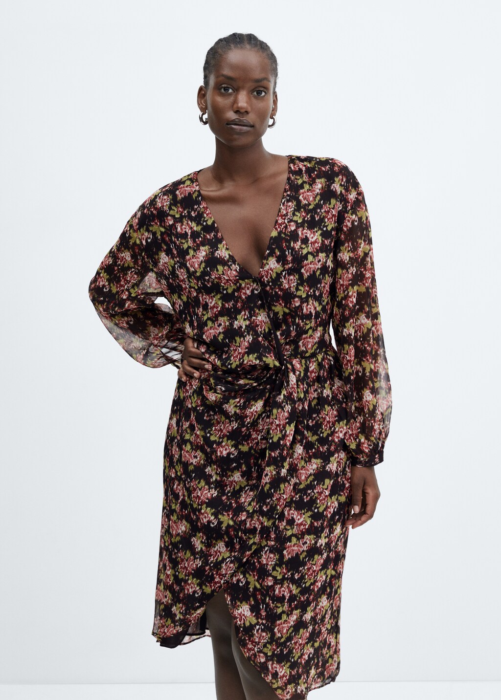 Mango gemustertes midikleid Clearance, Gemustertes Kleid mit Knotendetail - Damen | MANGO Schweiz Clearance