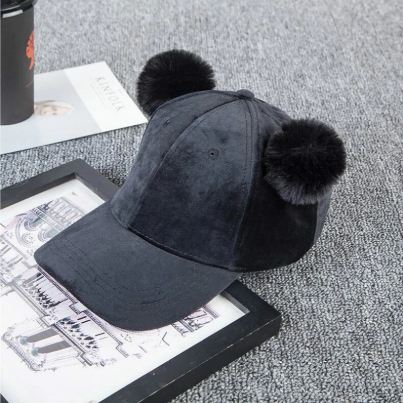 - Baseball cap with fur ball on top free shipping
