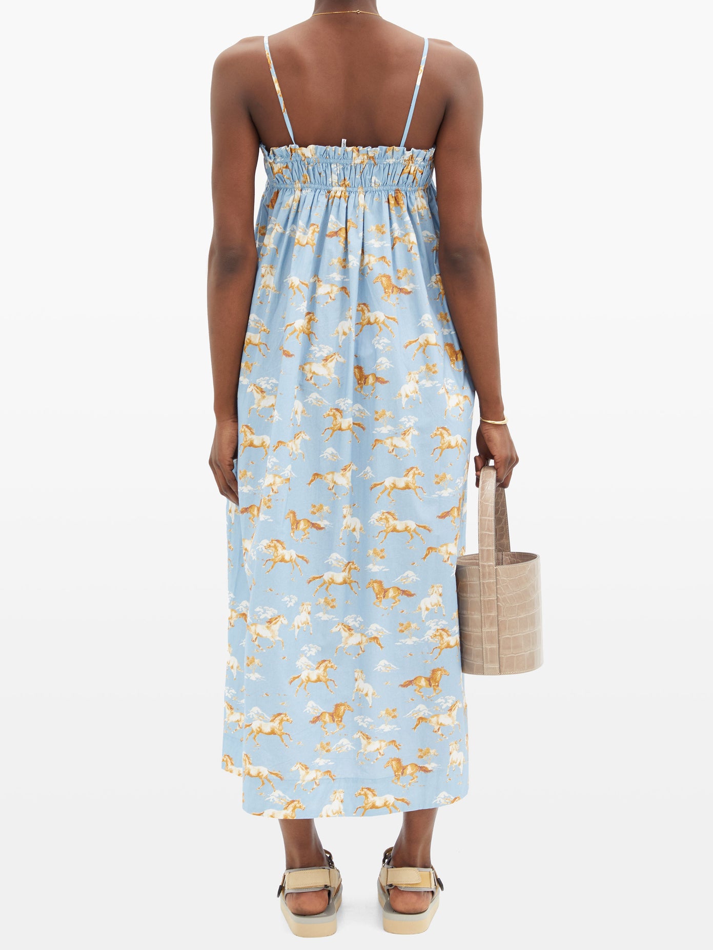 Ganni blue horse dress Clearance, Blue Multi Shirred Horse-print Cotton Clearance