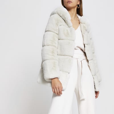 River island fur coat Clearance, Grey faux fur trim quilted coat | River Clearance