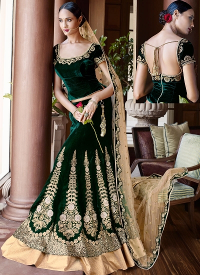 - Cheap Sabyasachi green velvet lehenga