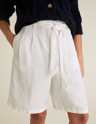 Long linen shorts Clearance, Linen High Waisted Pleat Front Long Clearance