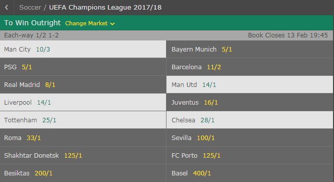 - Cheap Bet365 champions league outright