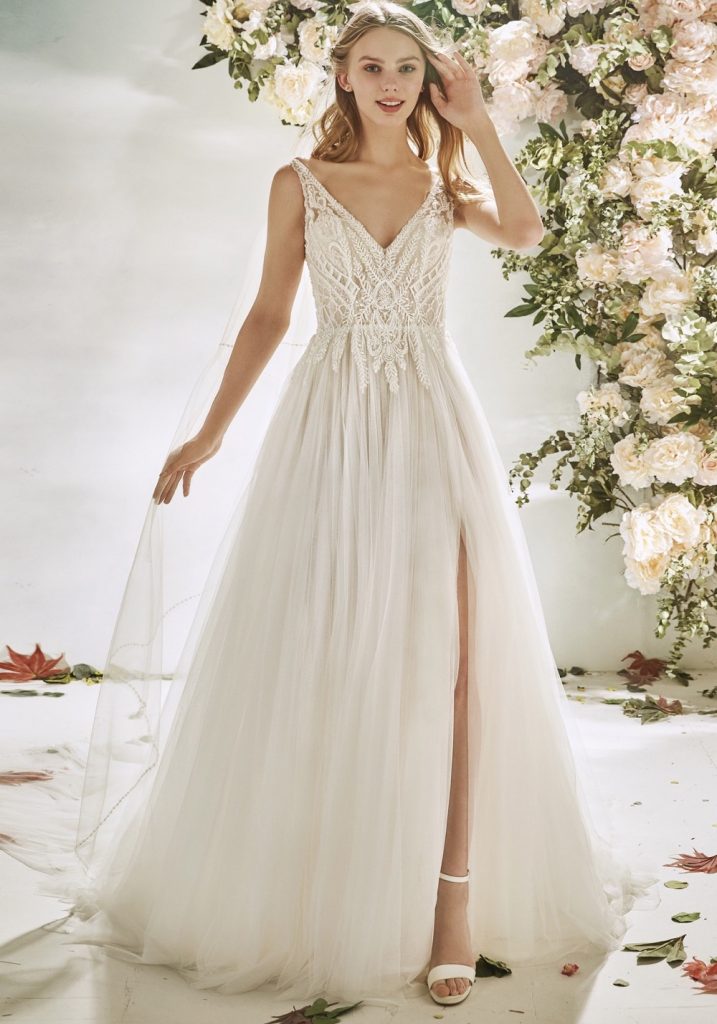- Tulle wedding dress with slit