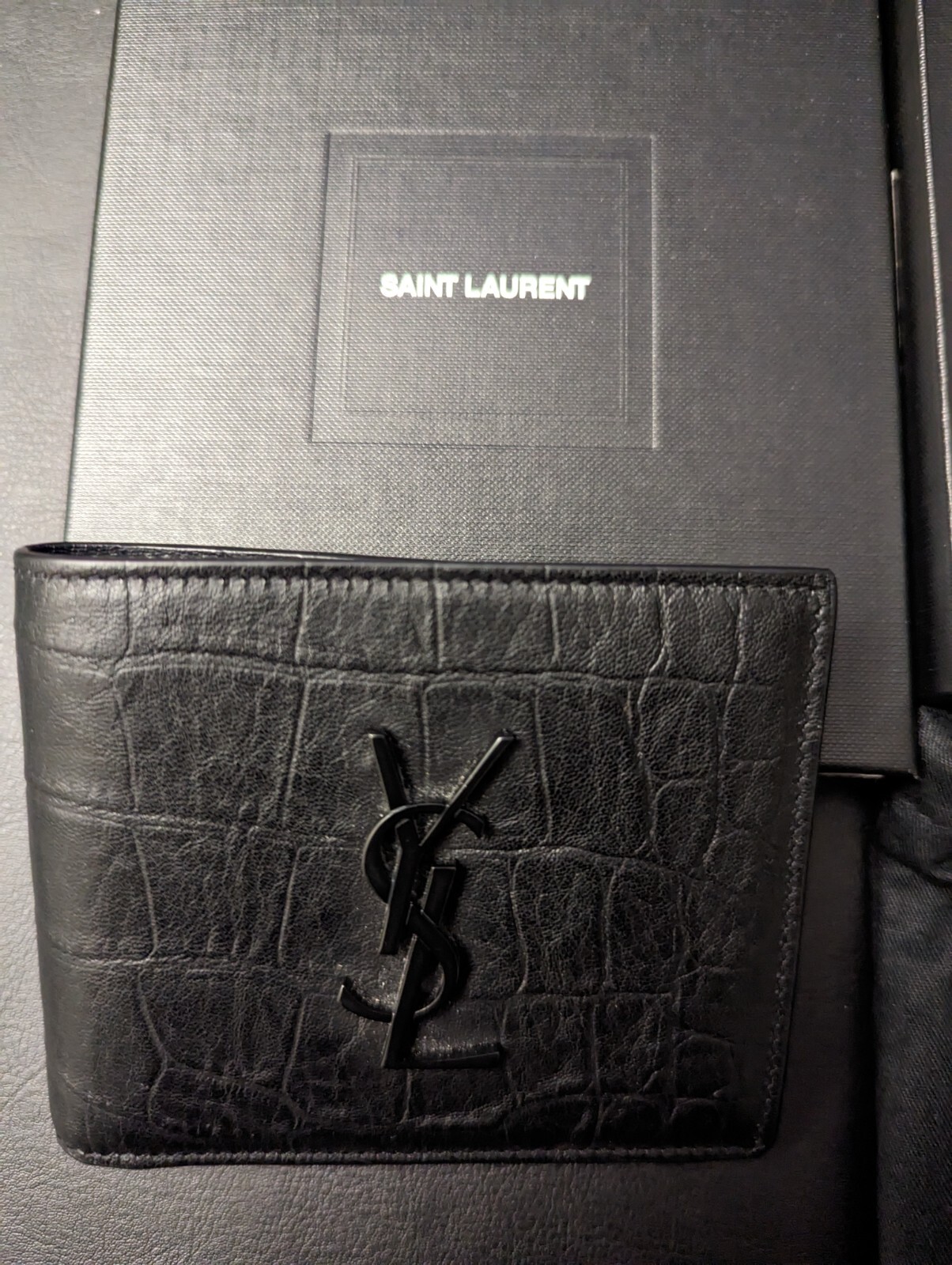 Geldbörse yves saint laurent Clearance, YSL Yves Saint Laurent Wallet Black Croc-Embossed Genuine Leather Mens Bifold Clearance