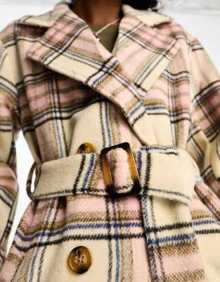 Pimkie mantel kariert Clearance, NaaNaa – Mantel in Rosa kariert | ASOS Clearance