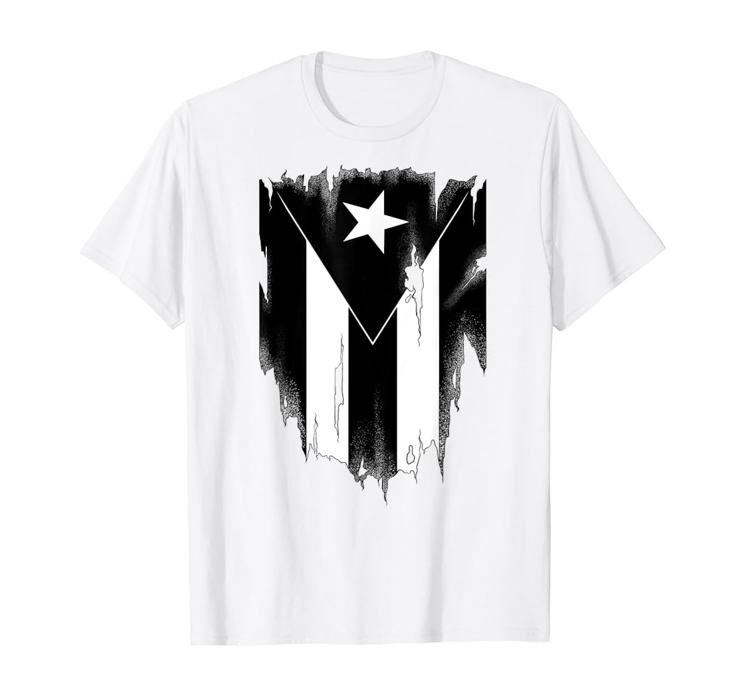 - Black and white puerto rican flag shirt