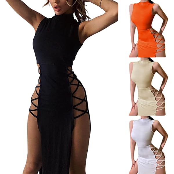 Damen sexy kleid Clearance, WANWEN Sexy Kleid Damen für Party, Sexy Kleid für die Clubnacht, Aushöhlen, Figurbetontes Kleid, ärmelloses, Geschnürtes, Schlankes, Split-Clubkleid, Sexy Outfit für Damen (Black,M) : Amazon.de: Fashion Clearance