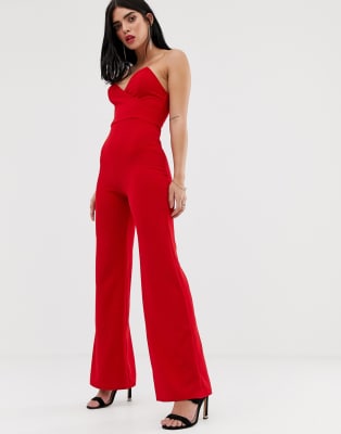 Red bandeau jumpsuit Clearance, Bandeau Jumpsuit With Wide Leg In Clearance