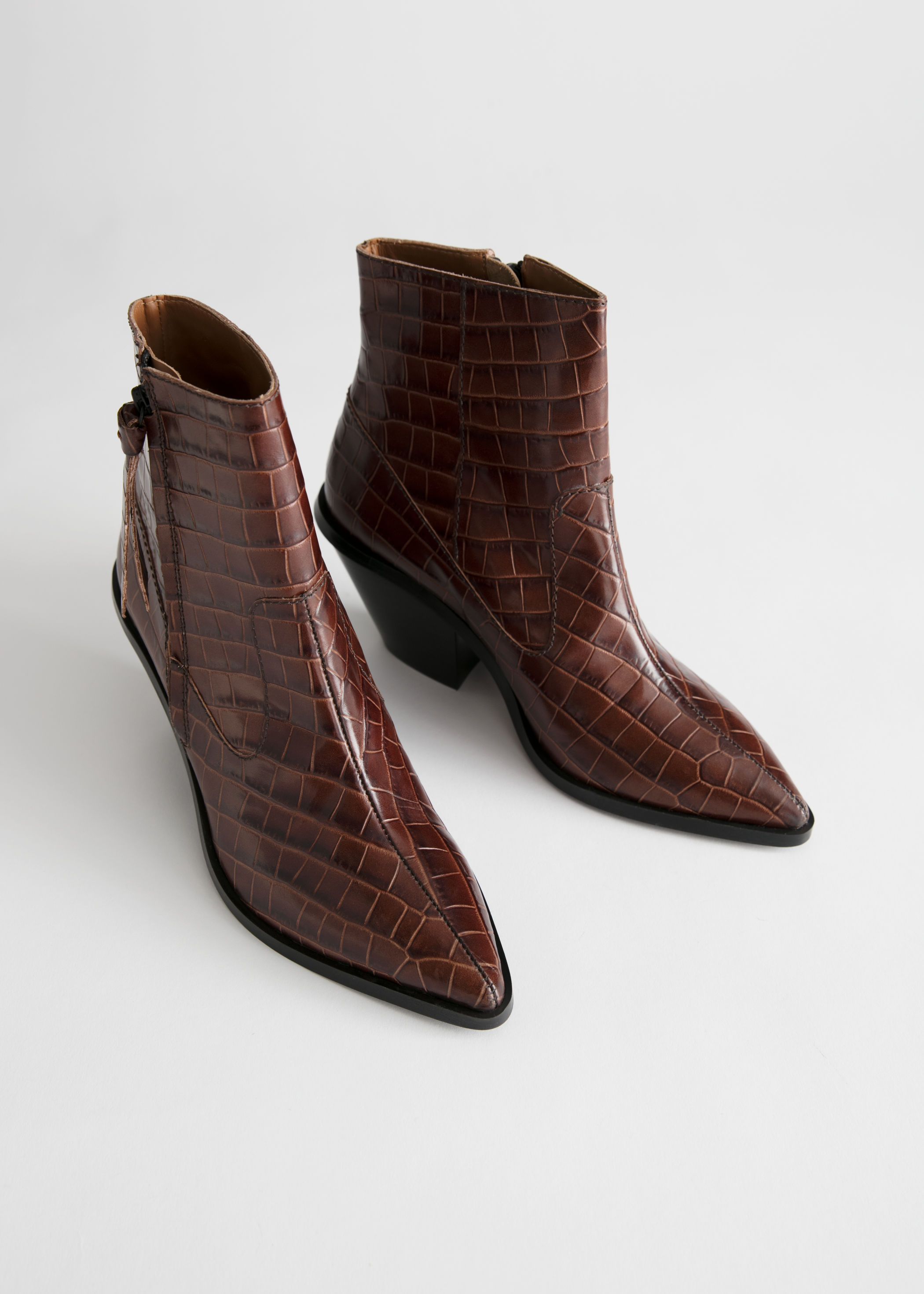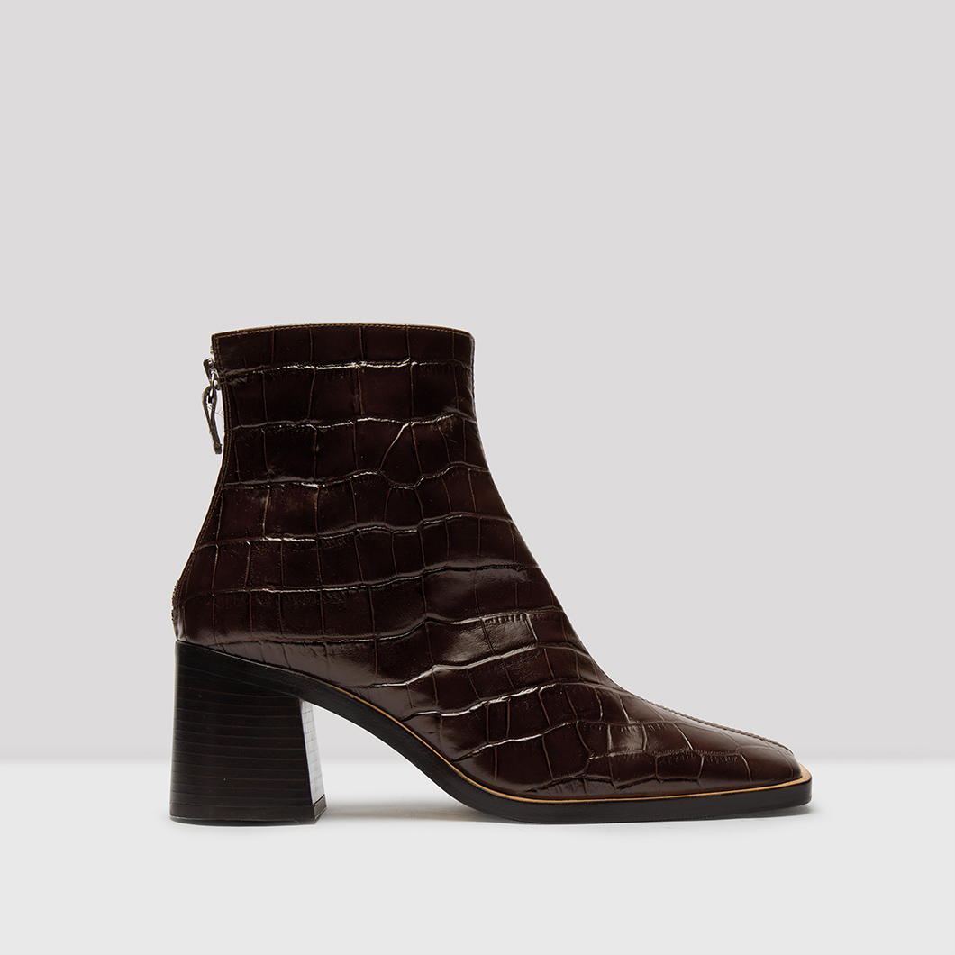 - Croc leather ankle boots