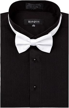 Black dress shirt with white bow tie Clearance, Marquis Wing tip Collar Tuxedo Dress Clearance