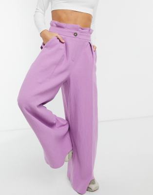 Lilac paper bag trousers Clearance, ASOS DESIGN paperbag trousers with d Clearance
