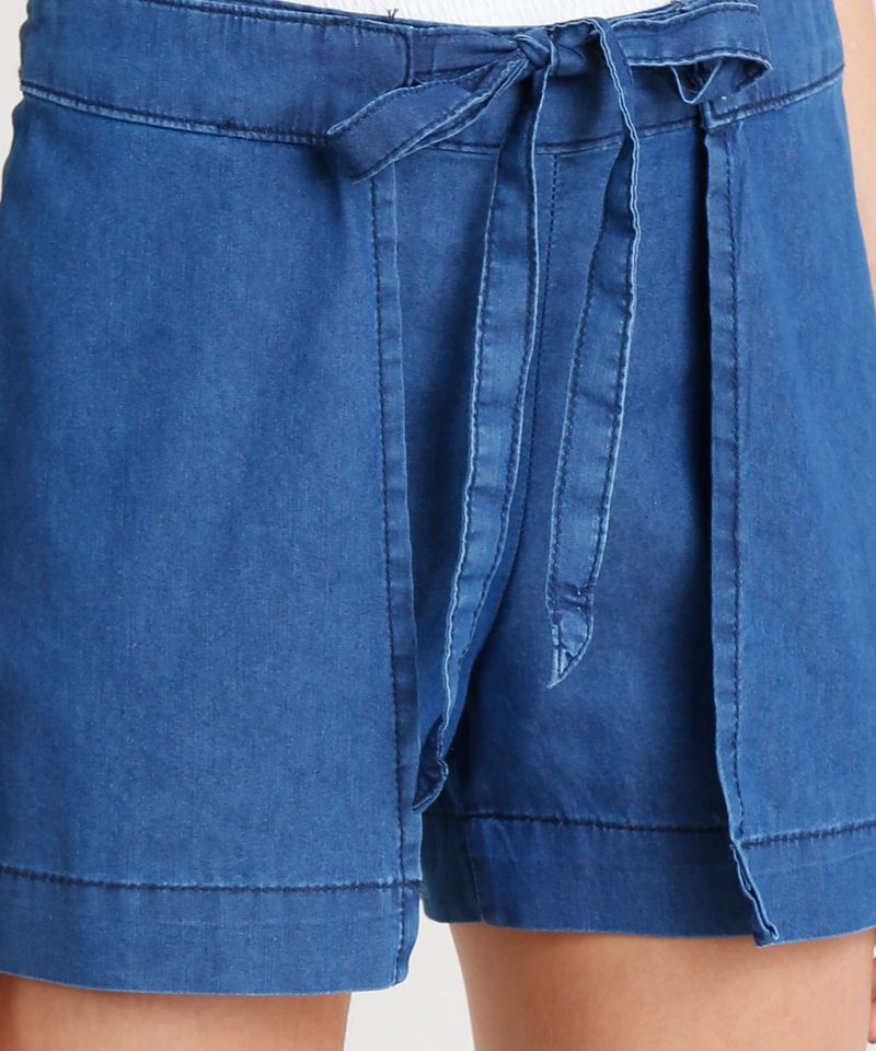 Short envelope jeans Clearance, Short Jeans Feminino Envelope com Sobreposição Azul Escuro Clearance