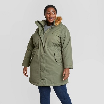 Plus size green parka Clearance