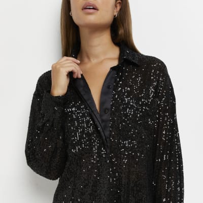 - Black sequin button down shirt clearance
