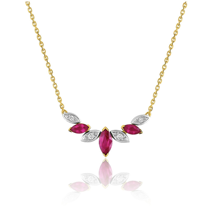 Collier femme rubis Clearance, Collier rubis marquise - Or jaune 18K et diamants Clearance