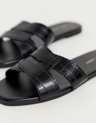 - New look cross strap flat slider sandal in black croc shop
