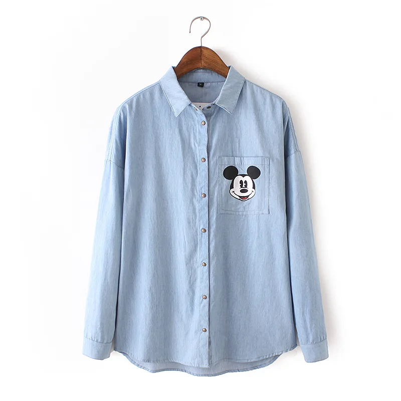 Chemise mickey femme Clearance, WomensDate 2017 Printemps Automne Femmes Casual Blouse Chemises À Manches Longues Impression Mickey Denim Coton Jeans Chemise Casual Femmes Chemise | AliExpress Clearance