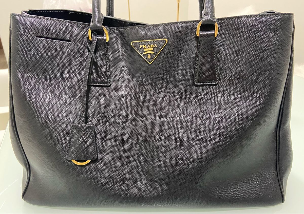 Couro saffiano Clearance, Bolsa Prada Galleria média em couro Saffiano Cinza Argila | Prada Clearance