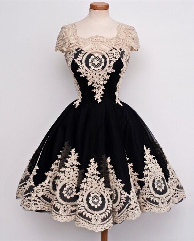 Vestidos de graduacion de secundaria Clearance, Compre Vestidos De Graduación De La Escuela Secundaria 2019 Vestidos De 15 Años Corto Vestidos De Ceremonia De La Boda Retro Negro Con Apliques De Encaje A 102,03 € Del Wddingdress_bridal | Es.Dhgate.Com Clearance