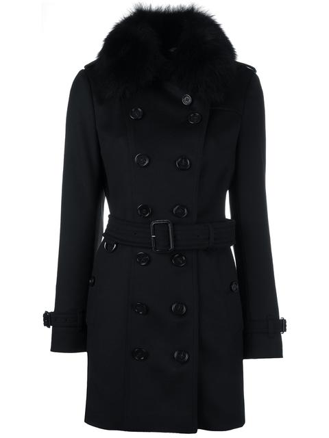- Burberry wool cashmere trench coat with fur collar