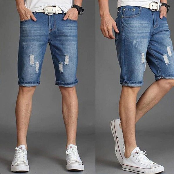 Bermuda jeans azul Clearance, Bermuda Jeans Manchada Desfiada Azul Masculina - Compre Agora - Feira da Madrugada SP Clearance