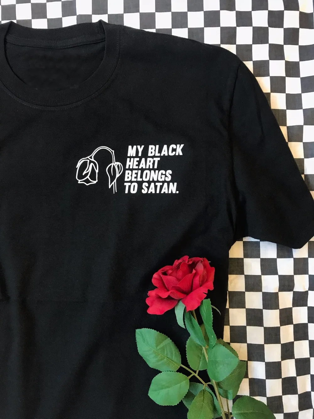 Dead rose shirt Clearance, My Black Heart Belongs to Satan T Shirt Clearance