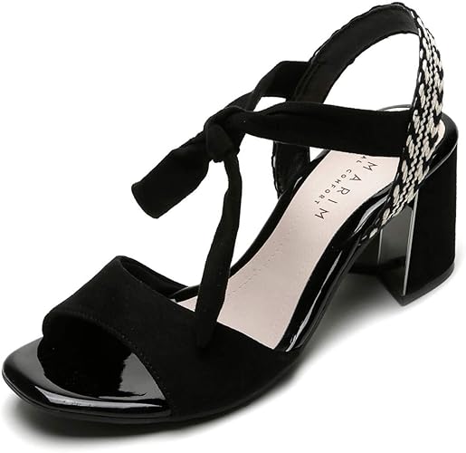 Sandália ramarim de amarrar Clearance, Sandália Ramarim Salto Grosso De Amarrar 1932204 Preto Bege | Amazon.com.br Clearance
