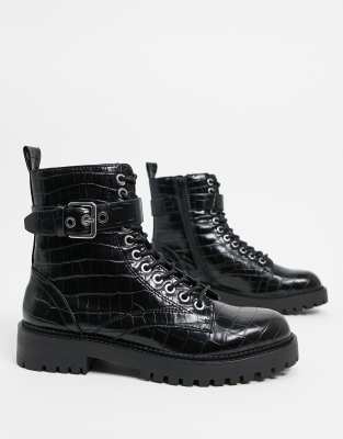 Boots pimkie noir Clearance, Pimkie moc croc chunky sole ankle boots in black | ASOS Clearance