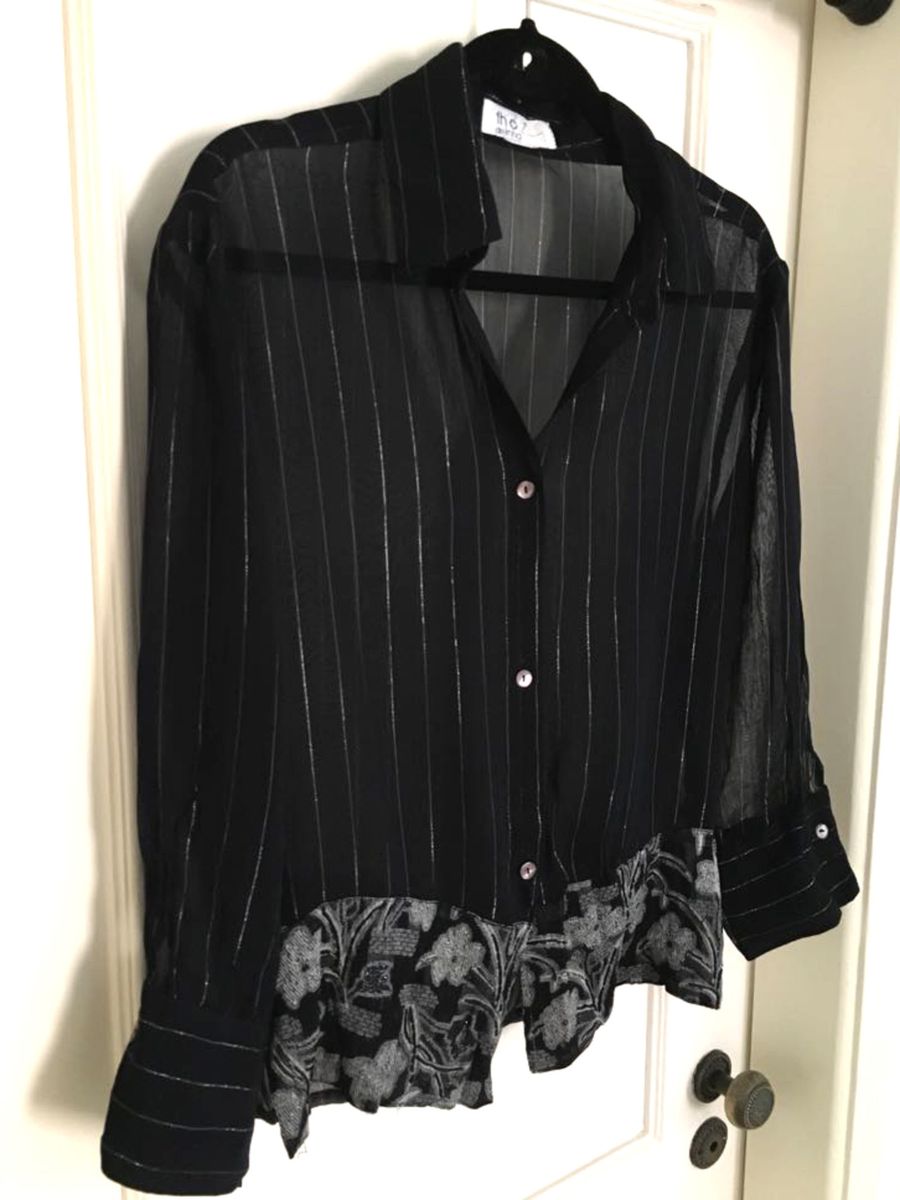 Camisa feminina preta transparente Clearance, Camisa Preta Transparente Listras Prata e Bordada | Camisa Feminina Fhio-De-Linha Usado 29012077 | enjoei Clearance