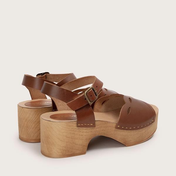 Sabots sandales Clearance, Sandales suédoises femme à talon plat et cuir végétal Clearance