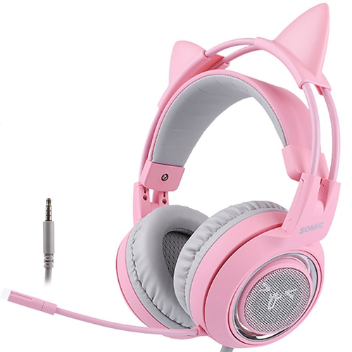 - Fone de ouvido gamer rosa com microfone sold