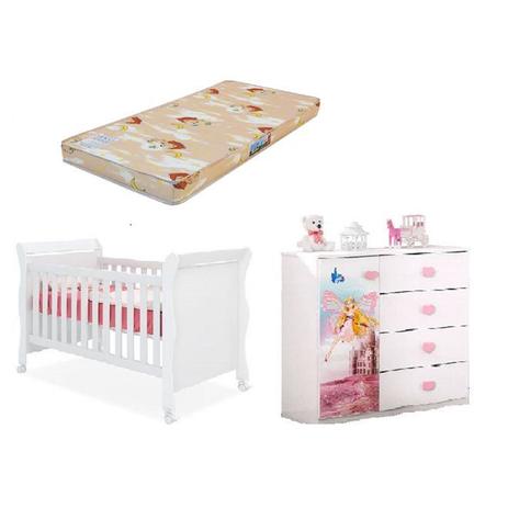 Berço com colchao e comoda Clearance, Berço Americano e Cômoda Infantil Danny Branco Brilho com Colchão Ortobom Reller Clearance