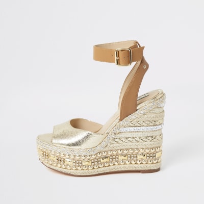 River island wedge sandals Clearance, Gold wide fit embellished wedge sandals Clearance