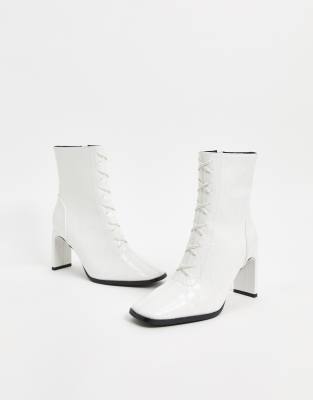 White lace up heeled boots Clearance