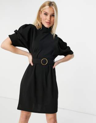 Vestido negro con cinturon Clearance, Vestido negro de estilo tubo con cinturón y botones en el hombro de Lipsy | Faoswalim Clearance