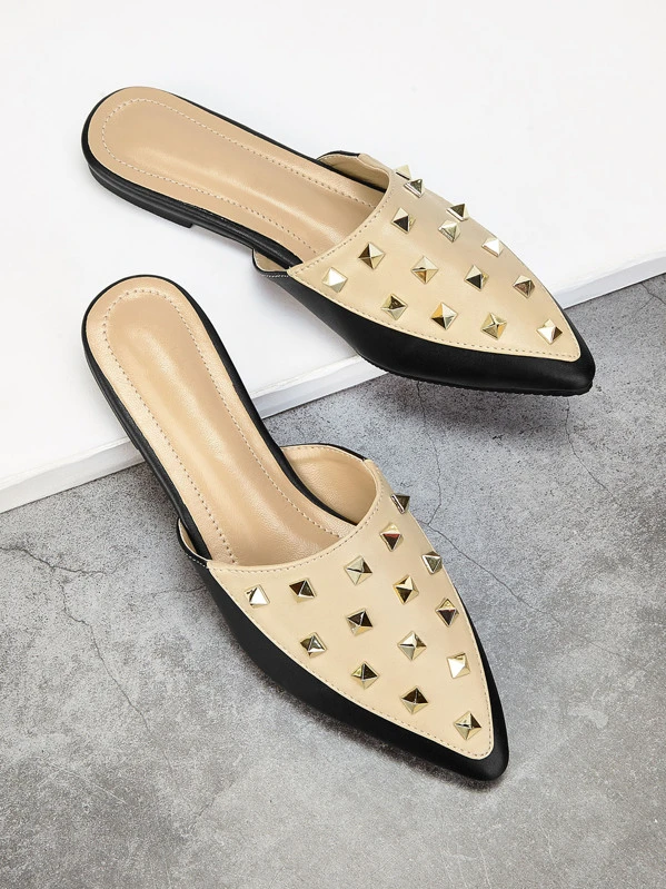 Mules tachuelas Clearance, Mules planos de punta de tachuela | ROMWE Clearance