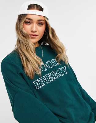 Womens forest green sweatshirt Clearance, ASOS DESIGN sweatshirt with good energy Clearance