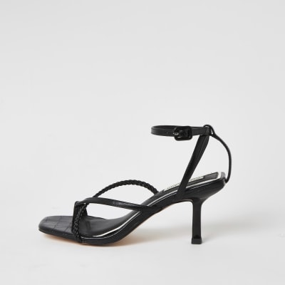 Black square toe heels Clearance, Black Pu Square Toe Strappy High Heeled Clearance