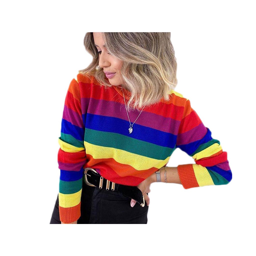 Blusa tricot listrada colorida Clearance, Blusa Feminina Tricot Tricô Colorida Listrada Arco Iris Longa moda instagran produto identico a foto original envio imediato qualidade | Shopee Brasil Clearance
