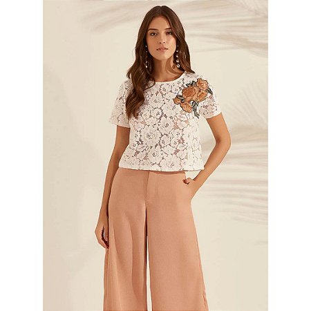 Blusas com renda na frente Clearance, Blusa Feminina De Renda Com Aplicação Na Frente - Basic For You Clearance