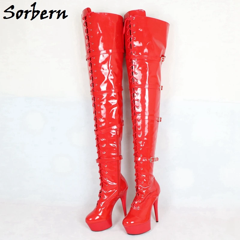 Cuissardes tige 80 cm Clearance, Sorbern – cuissardes à talons de 15cm pour femmes, hauteur de tige 80cm, plate forme à lacets, sangle à boucle | AliExpress Clearance