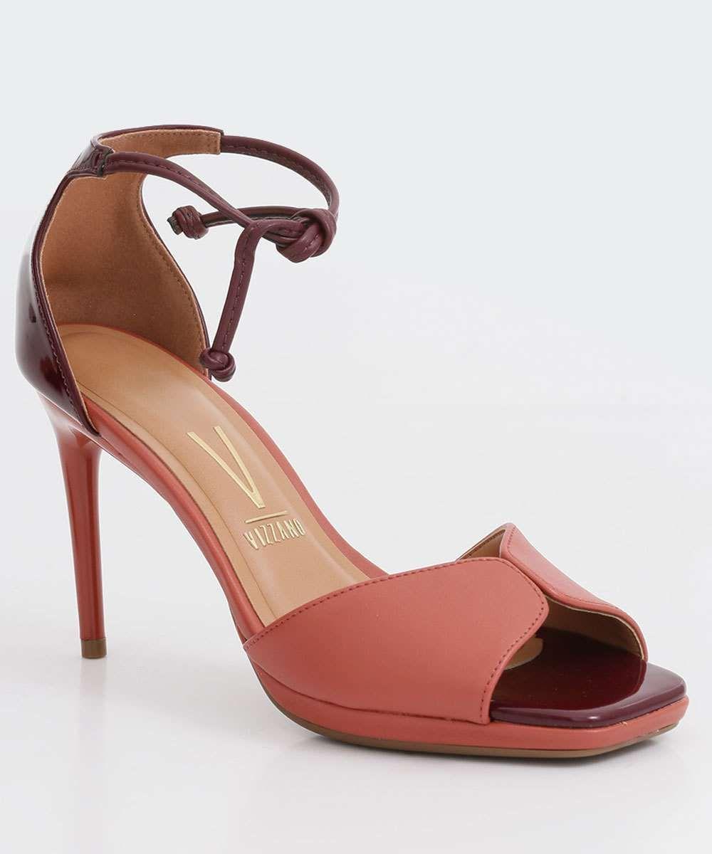- Sandália feminina bicolor verniz salto alto fino vizzano shop