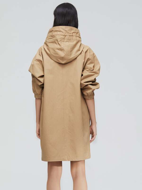 Trench con capucha mujer Clearance, JAZZEVAR Abrigo trench con capucha con cremallera con botón delantero | Moda de Mujer | SHEIN México Clearance