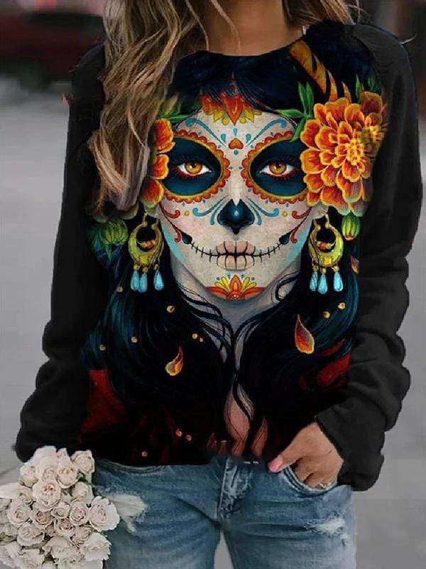 Sudadera catrina Clearance, la catrina calavera Sudadera de manga larga impresa Clearance