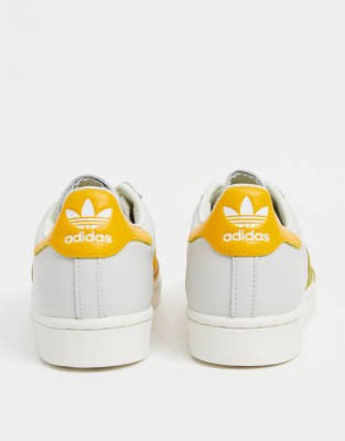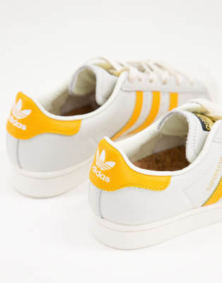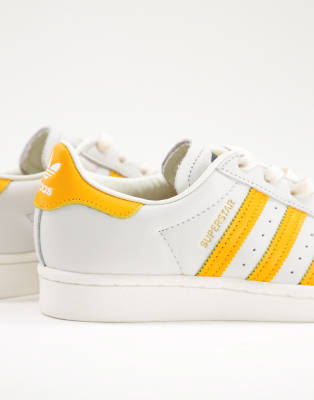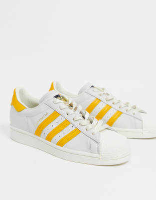 Adidas blancas y amarillas Clearance, Zapatillas de deporte blancas con rayas amarillas Superstar de adidas Originals | Faoswalim Clearance