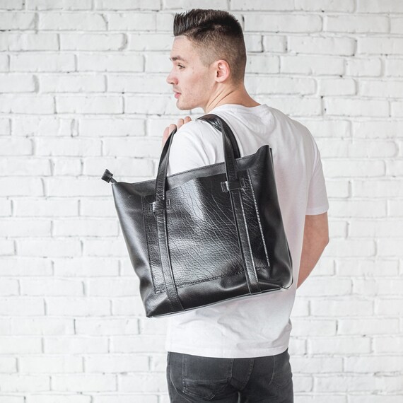 Mens leather tote bag with zipper Clearance